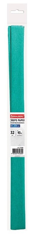 Бумага цветная крепированная Brauberg, 50x250см, плотная, растяжение до 45%, 32 г/кв.м, темно-зеленая, в рулоне, 1 лист (126537)