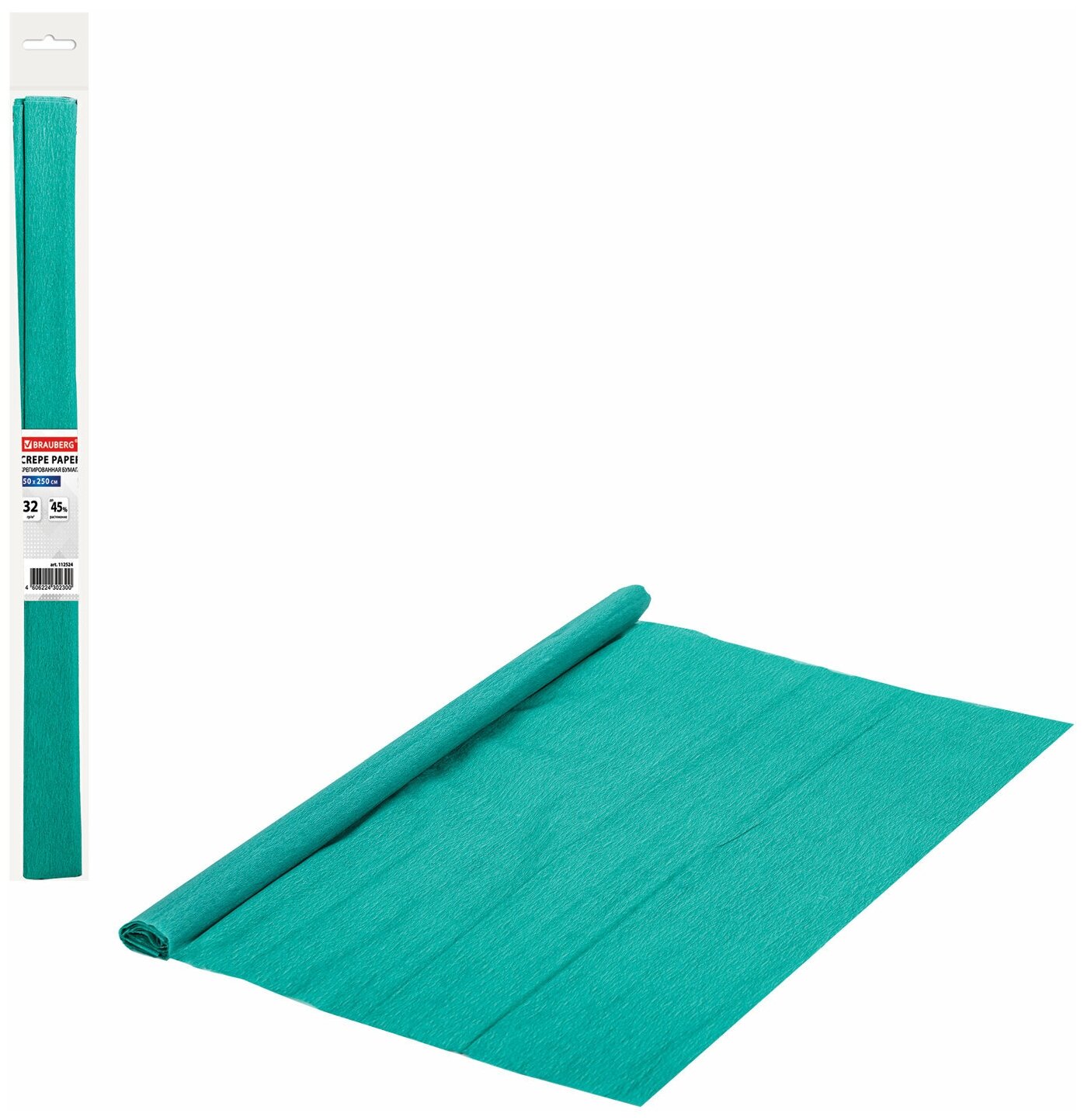 Бумага гофрированная/креповая, 32 г/м2, 50х250 см, изумруд, в рулоне, BRAUBERG, 112524