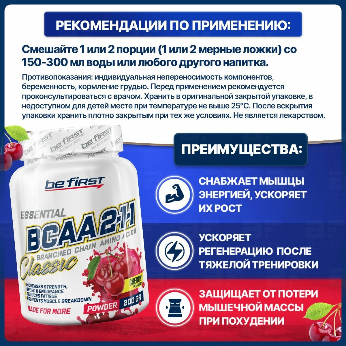BeFirst, BCAA 2:1:1 Classic powder, 200г (вишня)