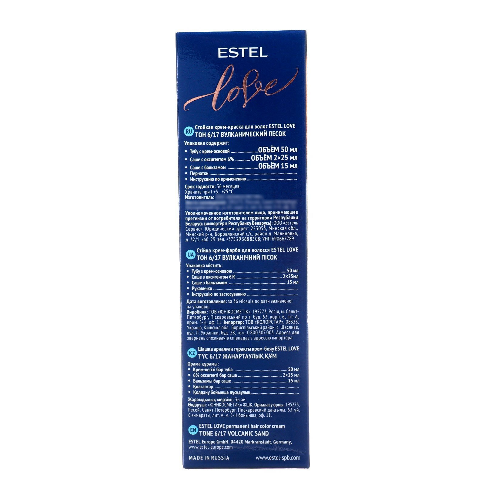 ESTEL, LOVE, Крем-краска №6/17, вулканический песок, 50 мл