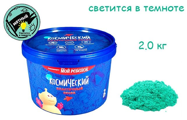 Кинетический песок космический песок Мятный 2 кг, светящийся в темноте