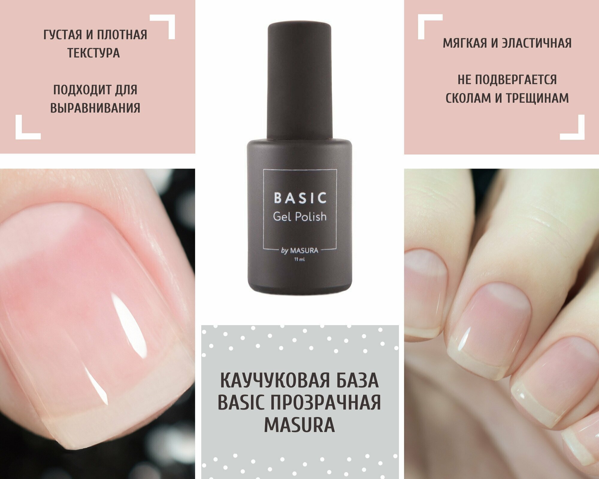 Masura Каучуковая База для гель-лака BASIC, прозрачная, основа для гель-лака, 11 мл