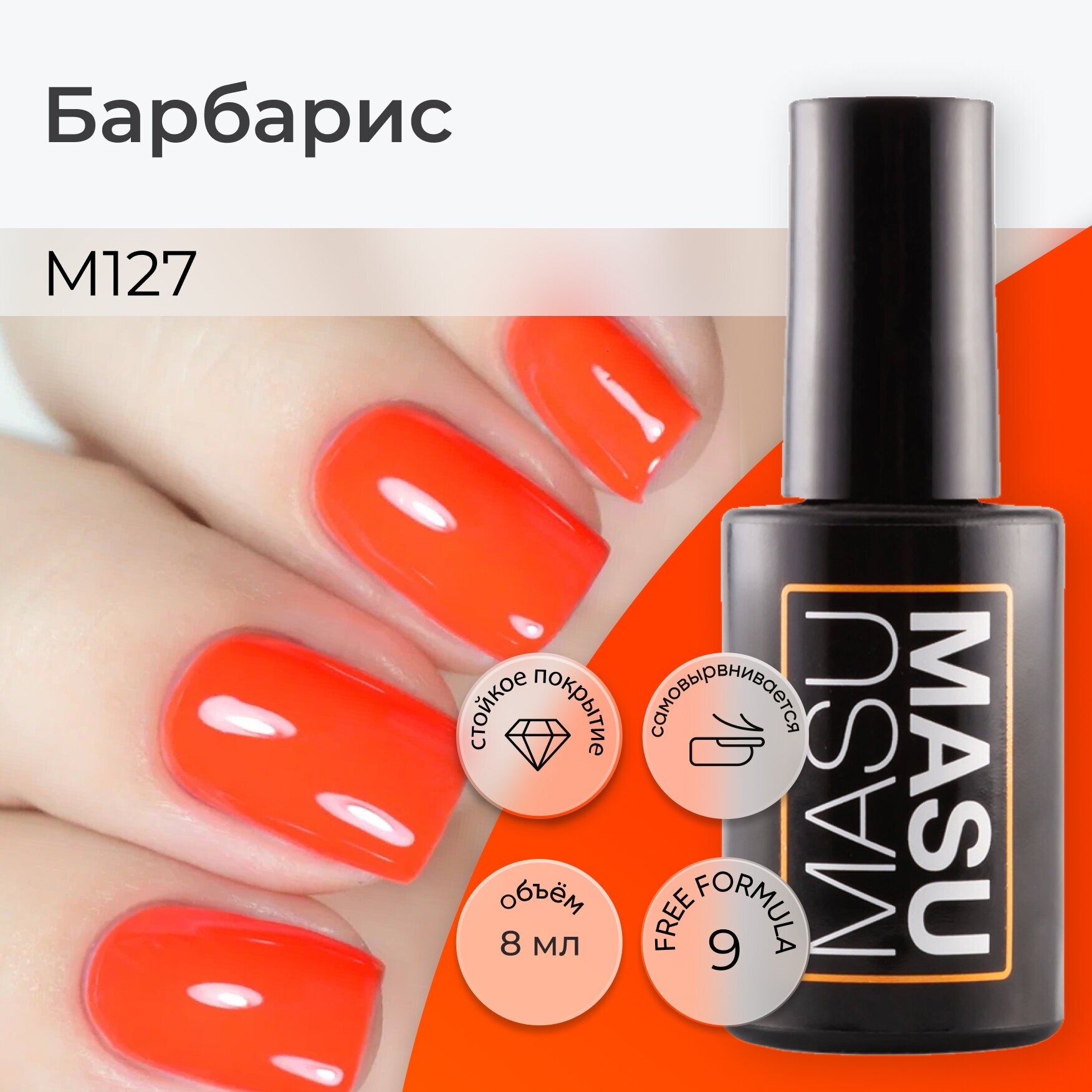 Masura Гель-лак MASU MASU Коралл, насыщенный коралловый 8 мл M030