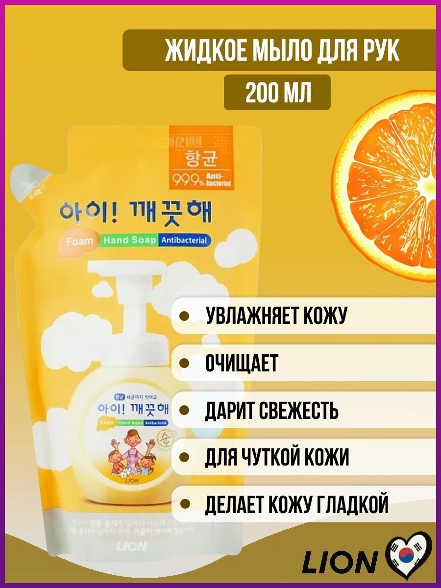 Жидкое мыло-пенка для рук LION антибактериальное, для чувствительной кожи, 200 мл (дой-пак)