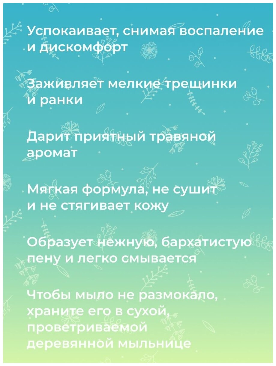 Мыло имеет лёгкий аромат ромашки, хорошо мылится и без труда очищает кожу от загрязнений. Не сушит. Подходит для всего тела, в том числе для лица. Советую! |