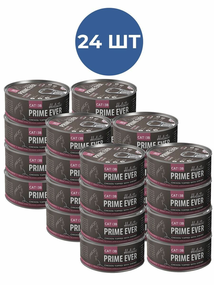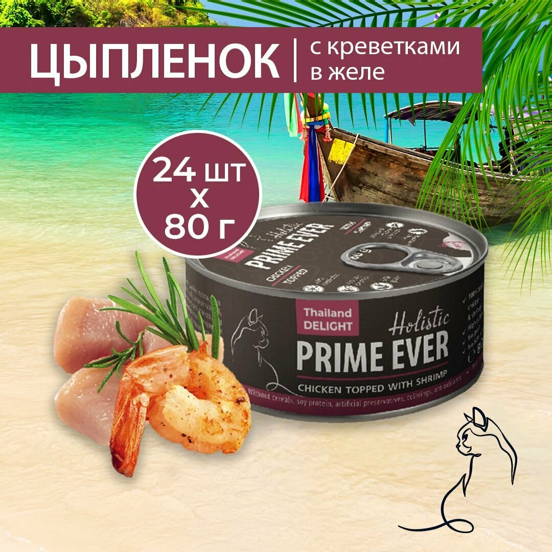 Влажный корм для кошек, цыпленок с креветками в желе, холистик, Prime Ever, упаковка 24 шт х 80 г