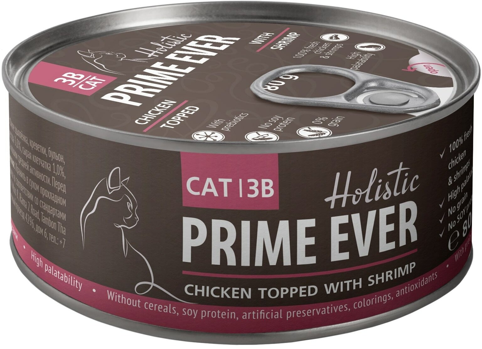 Купить Prime Ever 3B Цыпленок с креветками в желе влажный корм для кошек, 24 шт по 80гр