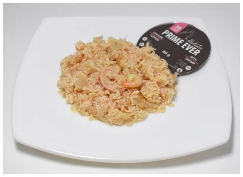| Отзыв: | Использую консервы цыпленок с креветками от Prime Ever уже более 3 месяцев. Отличный сбалансированный корм с большим количеством белка и без неизвестных наполнителей, которые только отбирают общий объем и массу (за которые заплачены деньги) и не приносят никакой пользы. Кошка ест с удовольствием — ведь в банке хорошее мясо и такая же рыба. Если бы не знал, а оценивал содержание баночки только по внешнему виду, запросто мог подумать, что внутри человеческая еда. Цельные кусочки креветов внутри банки выглядят достаточно аппетитно |