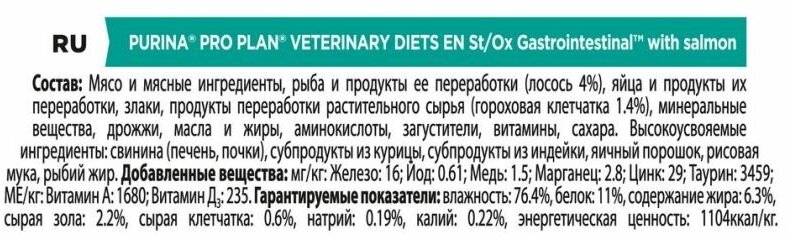 СохранитьВлажный корм для кошек Pro Plan Veterinary Diets EN St/Ox, с лососем 85 г (кусочки в желе) интересное: