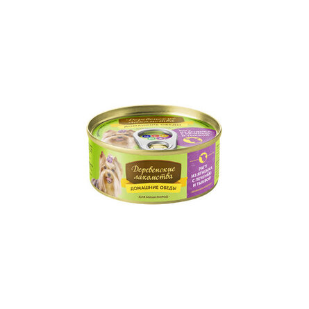 Консервы Деревенские лакомства "Домашние обеды" для собак мелких пород с ягненком, печенью и тыквой 100г 76135450