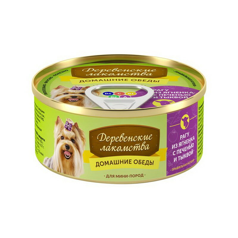 Деревенские лакомства 76135450 консервы для мини-пород Домашние обеды Рагу из ягненка с печенью и тыквой 100г(10 штуки)