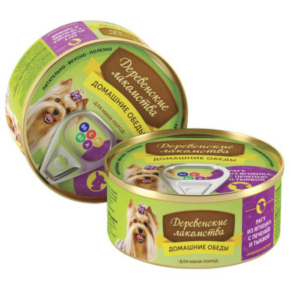 Корм влажный Деревенские лакомства консервы для мини-пород Домашние обеды Рагу из ягненка с печенью и тыквой 100г (10 штук)