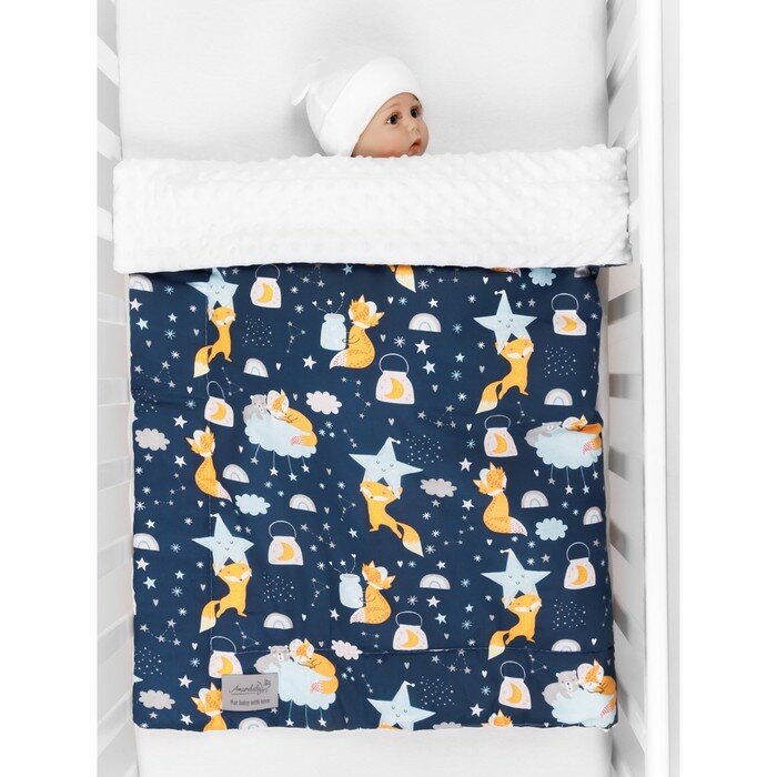 Купить Плед AmaroBaby растем вместе 95х85 хлопок/minky Moon fox, синий/белый