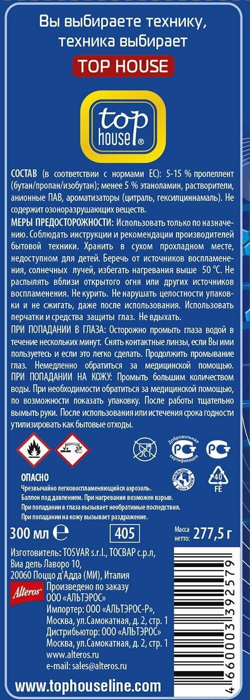 TOP HOUSE Очиститель плит, духовок и СВЧ-печей, 300 мл, (аэрозоль). интересное: