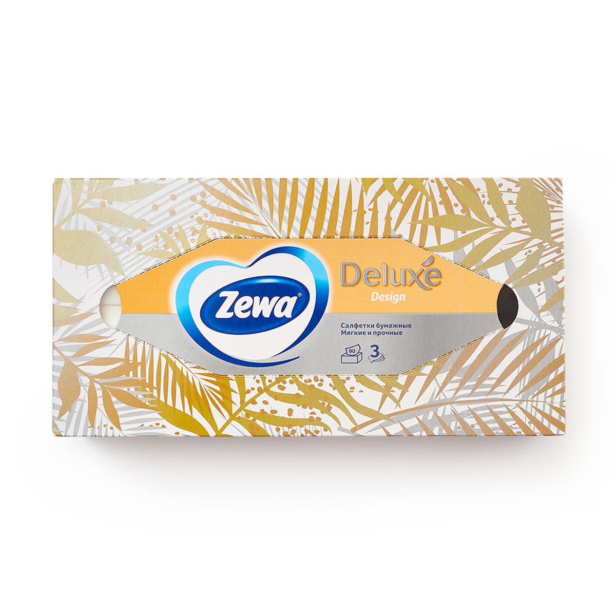 Салфетки Бумажные в коробке Zewa Deluxe Дизайн, 3 слоя, 90 шт.