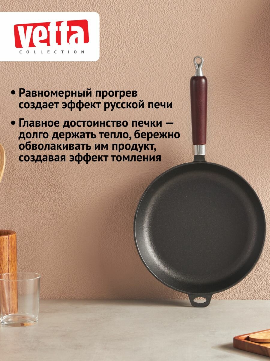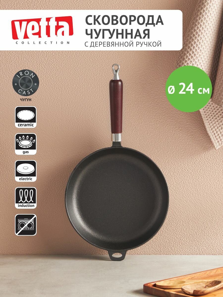 Сковорода чугунная Vetta 24 см, деревянная ручка, 808006