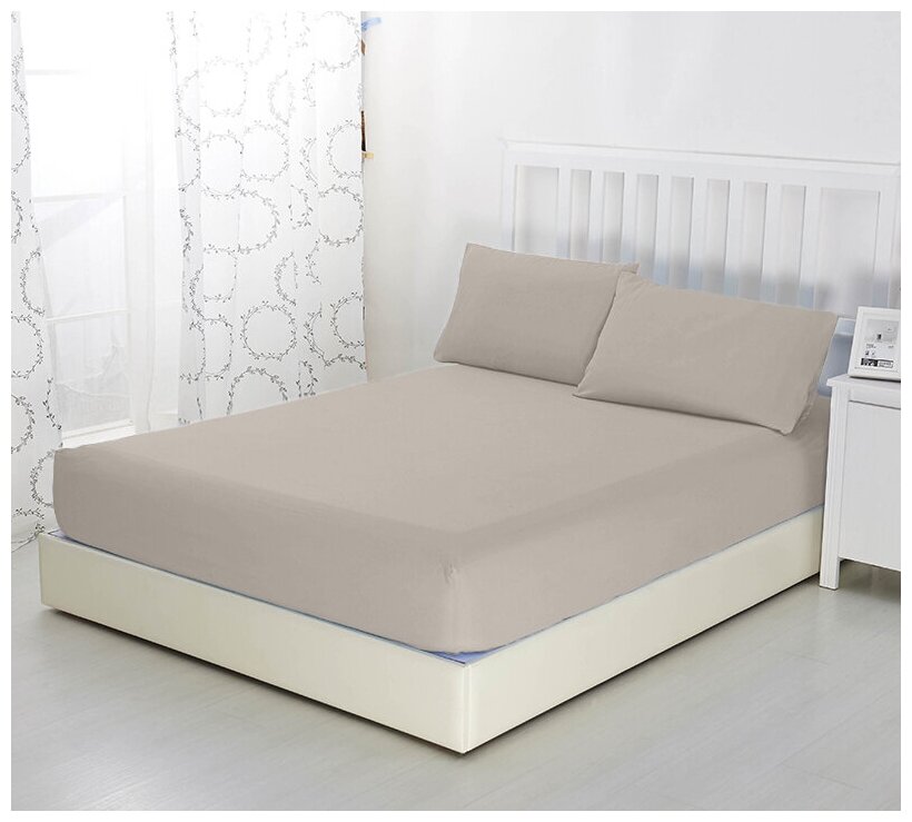 Трикотажная простынь на резинке 160х200 Бежевая, 100% хлопок