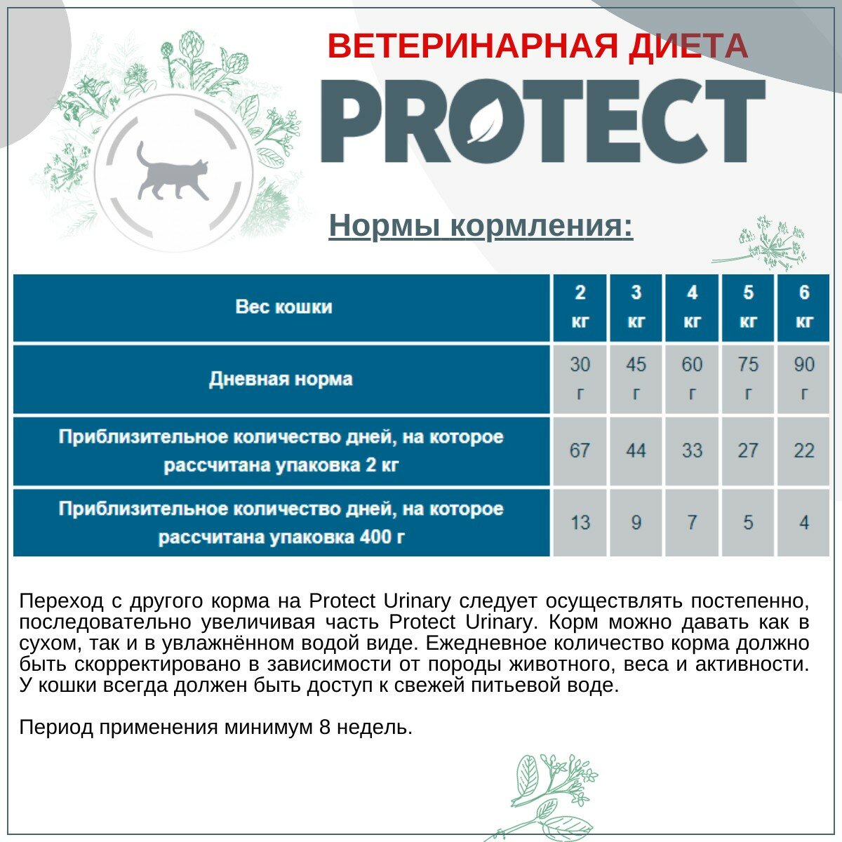 | Особые потребности | профилактика заболеваний мочевыводящих путей |