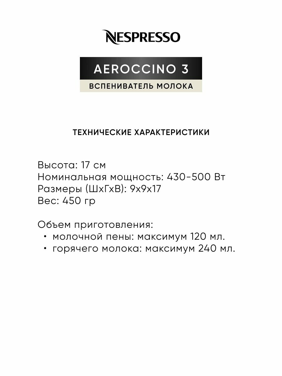 Вспениватель для молока Nespresso Aeroccino 3, черный