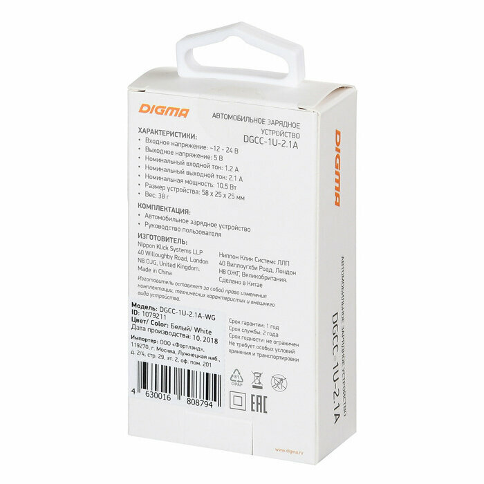 Ниже Вы можете прочитать отзывы на Автомобильное зар./устр. Digma DGCC-1U-2.1A-WG 10.5W 2.1A USB универсальное белый, ознакомится с подробными характеристиками, посмотреть интересные обзоры и фотографии на Автомобильное зар./устр. Digma DGCC-1U-2.1A-WG 10.5W 2.1A USB универсальное белый.