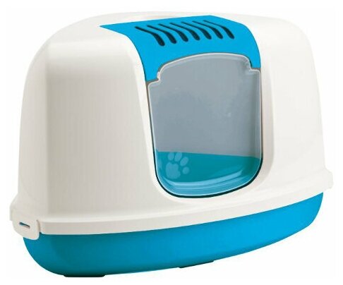Туалет для кошек закрытый угловой SAVIC NESTOR CORNER белый/голубой камень