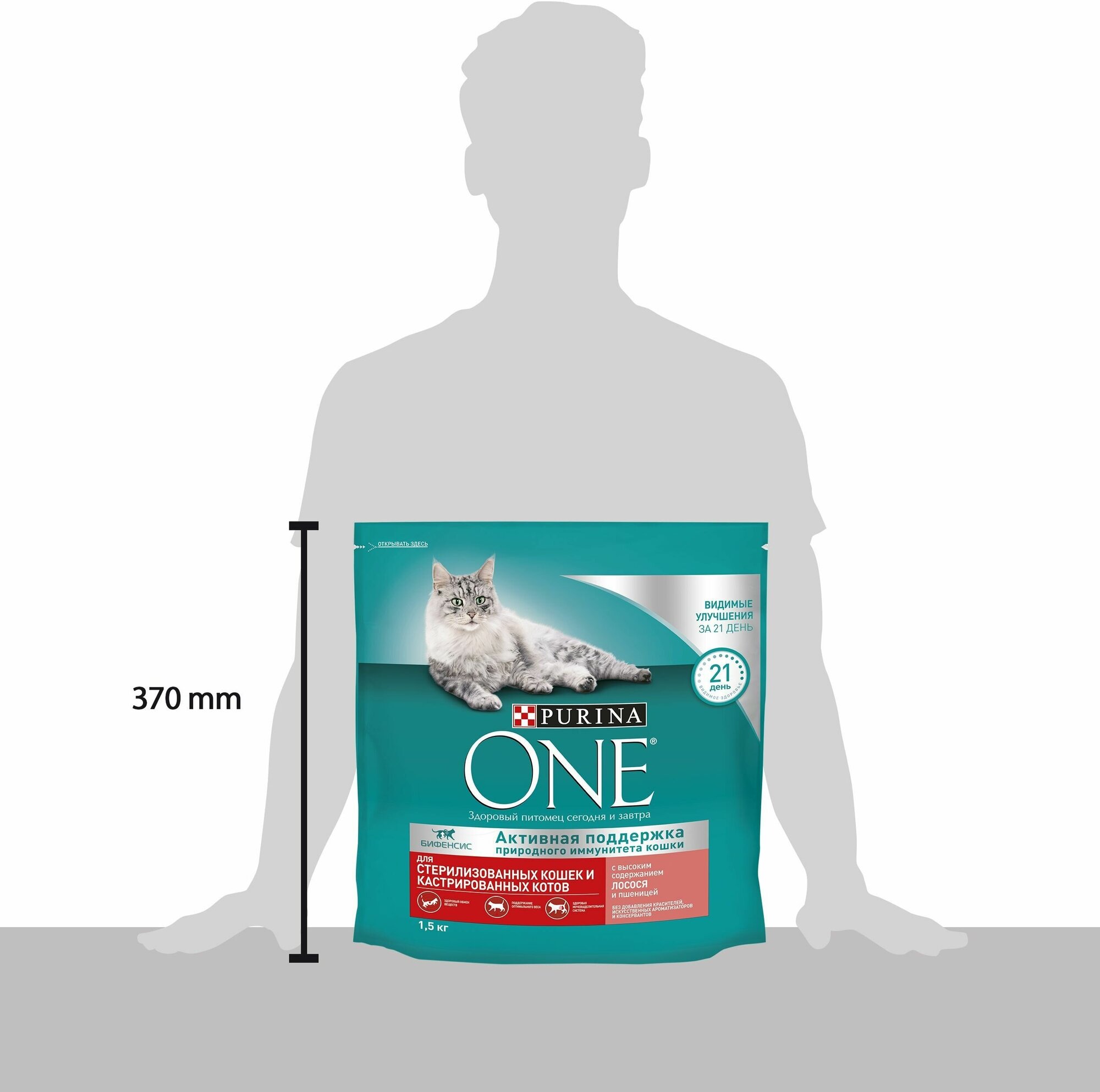 Сухой корм Purina ONE полнорационный для стерилизованных кошек и кастрированных котов, с высоким содержанием лосося, 1,5 кг