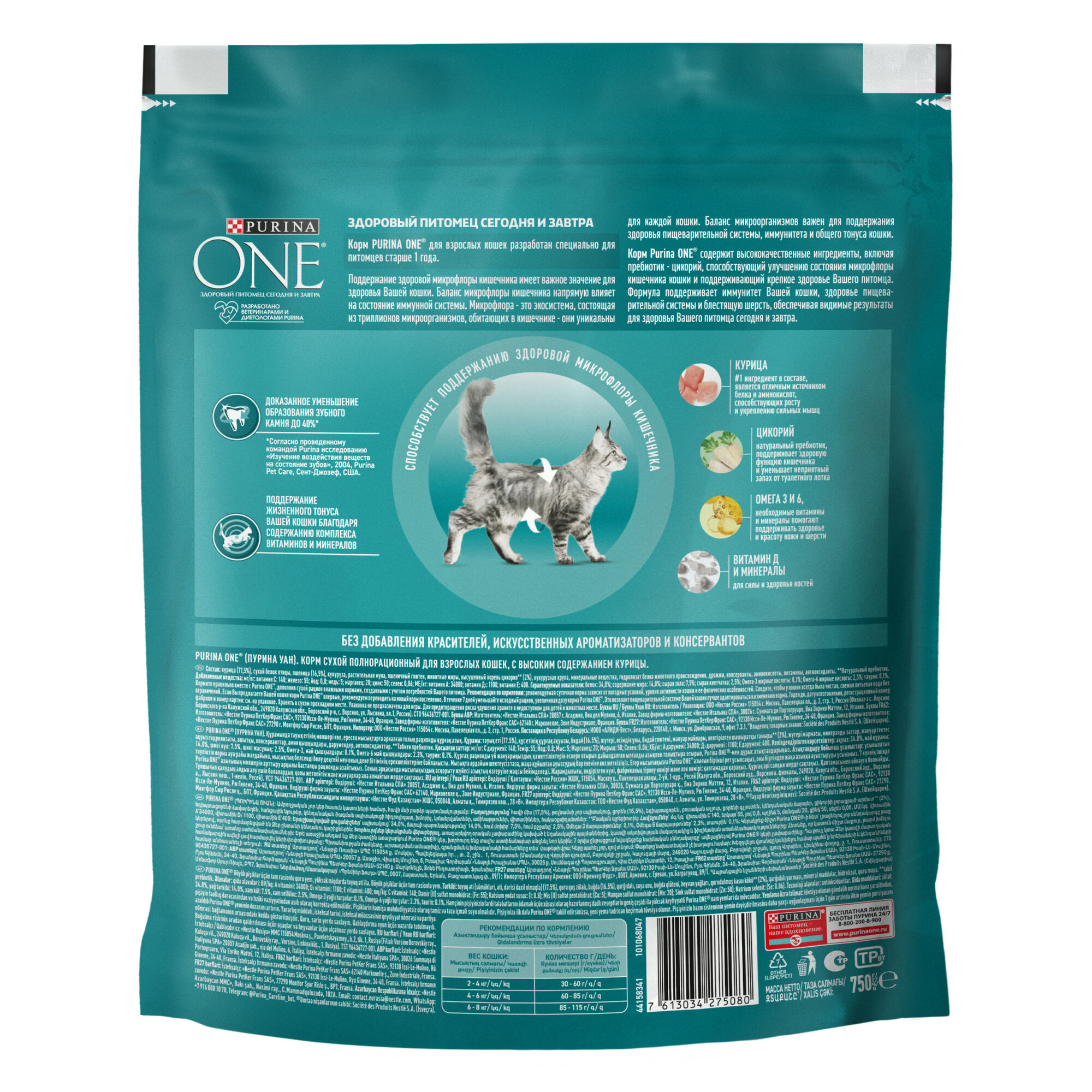 Сухой корм Purina ONE для взрослых кошек, с высоким содержанием курицы и цельными злаками 750 г