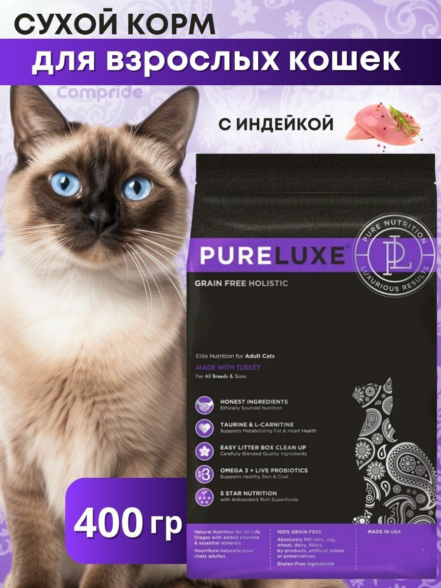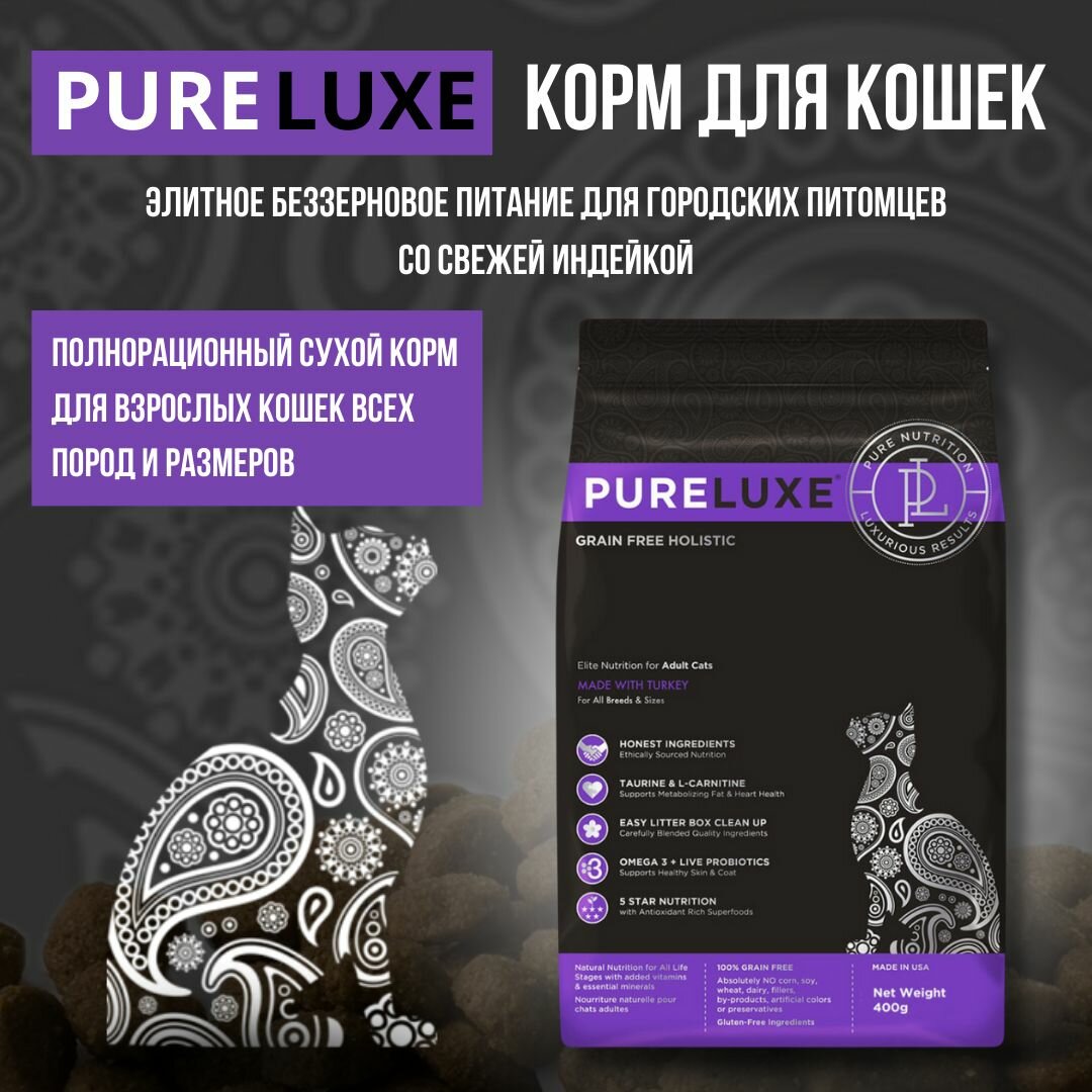 PURELUXE элитное питание беззерновой для взрослых кошек с индейкой (0,4 кг)