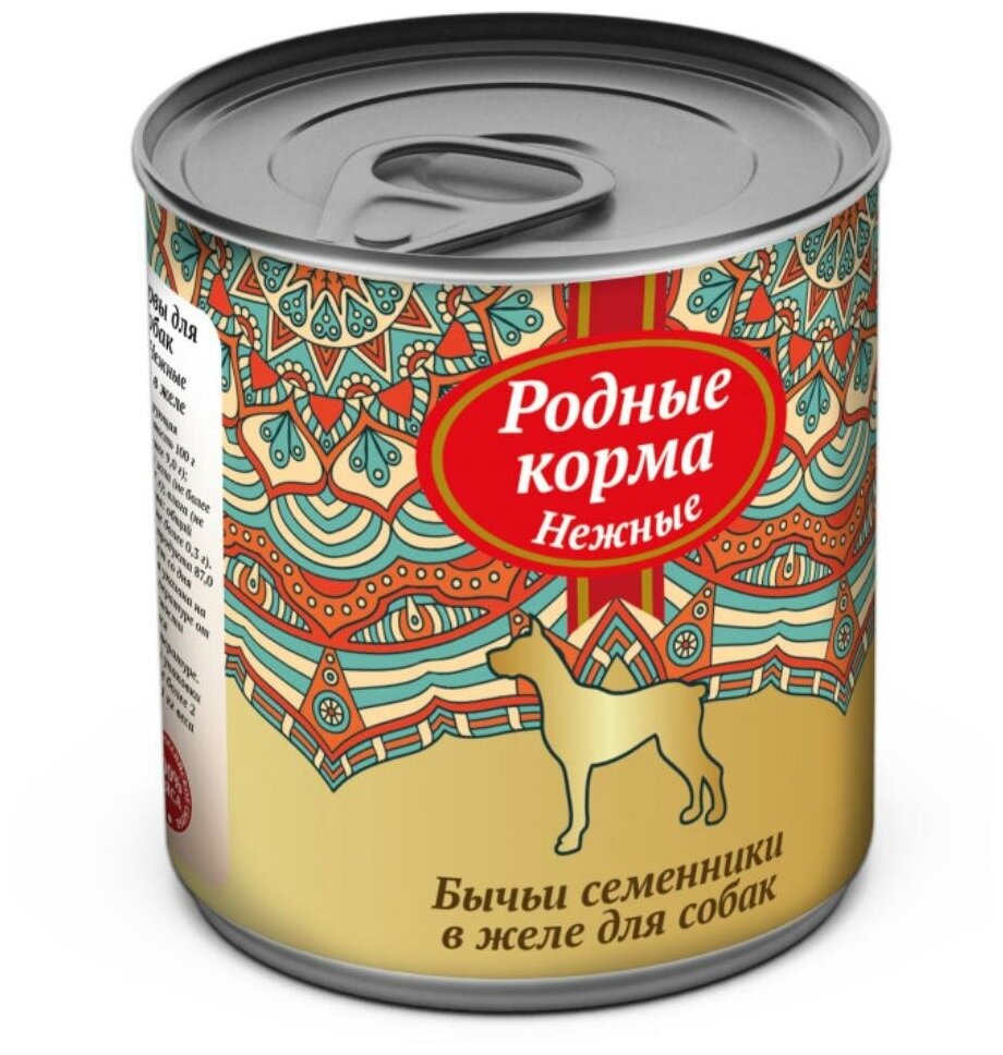 Купить Родные Корма "Нежные" влажный корм для взрослых собак Бычьи семенники в желе в консервах - 240 г х 12 шт