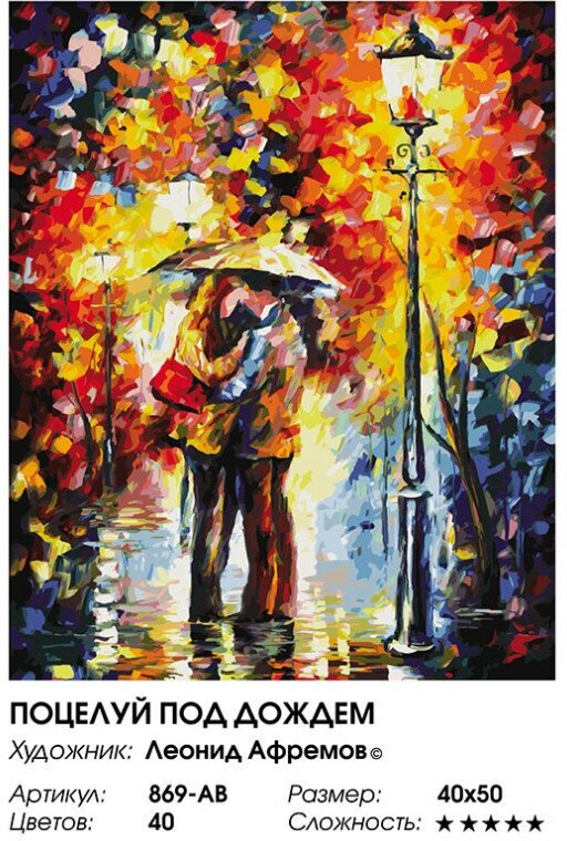 Белоснежка 869-AB Поцелуй под дождем Раскраска по номерам 40 х 50 см интересное: