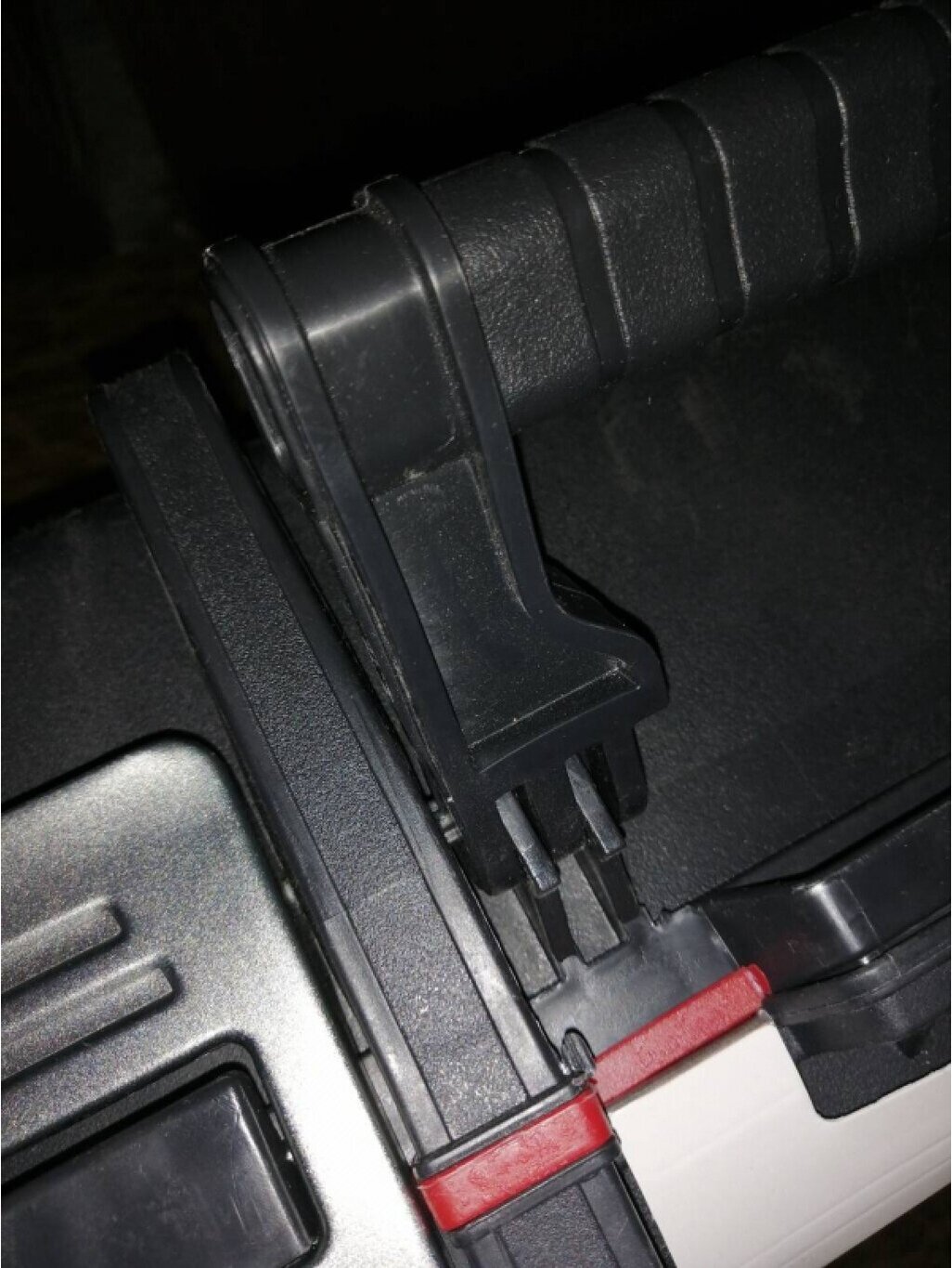 | Отзыв: | Чемодан не перегружал. Инструмента в нём от силы килограмм восемь было. На второй день эксплуатации стал обладателем нового, красивого и функционального чемодана без ручки ))) Оказался брак литья ручки. Он бы и пустой при такой проблеме дольше недели эксплуатации не продержался. Недостаток литья при осмотре изделия почти не заметен. На фото видны некие "бубыри" - перелив пластика. При складывании ручки они распирают шарнир создавая избыточное усилие на пластике.