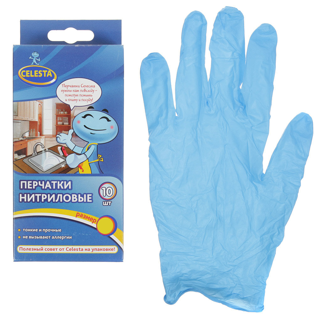 Купить Перчатки нитриловые Celesta 10 шт, L, синий