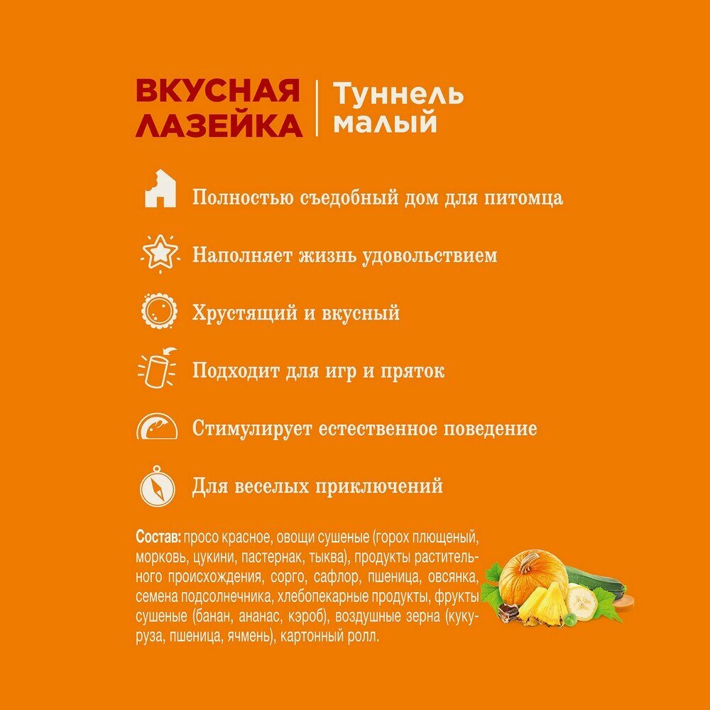 СохранитьLittle One "Туннель малый" лакомство-игрушка для грызунов 150гр интересное: