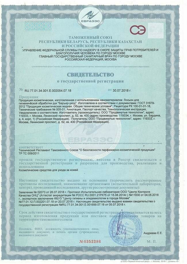Лосьон для рук "Барьер-уход" с наносеребром для обеззараживания кожи рук, повышения эластичности и упругости, снижения морщинистости, залечивания микротрещин кожи