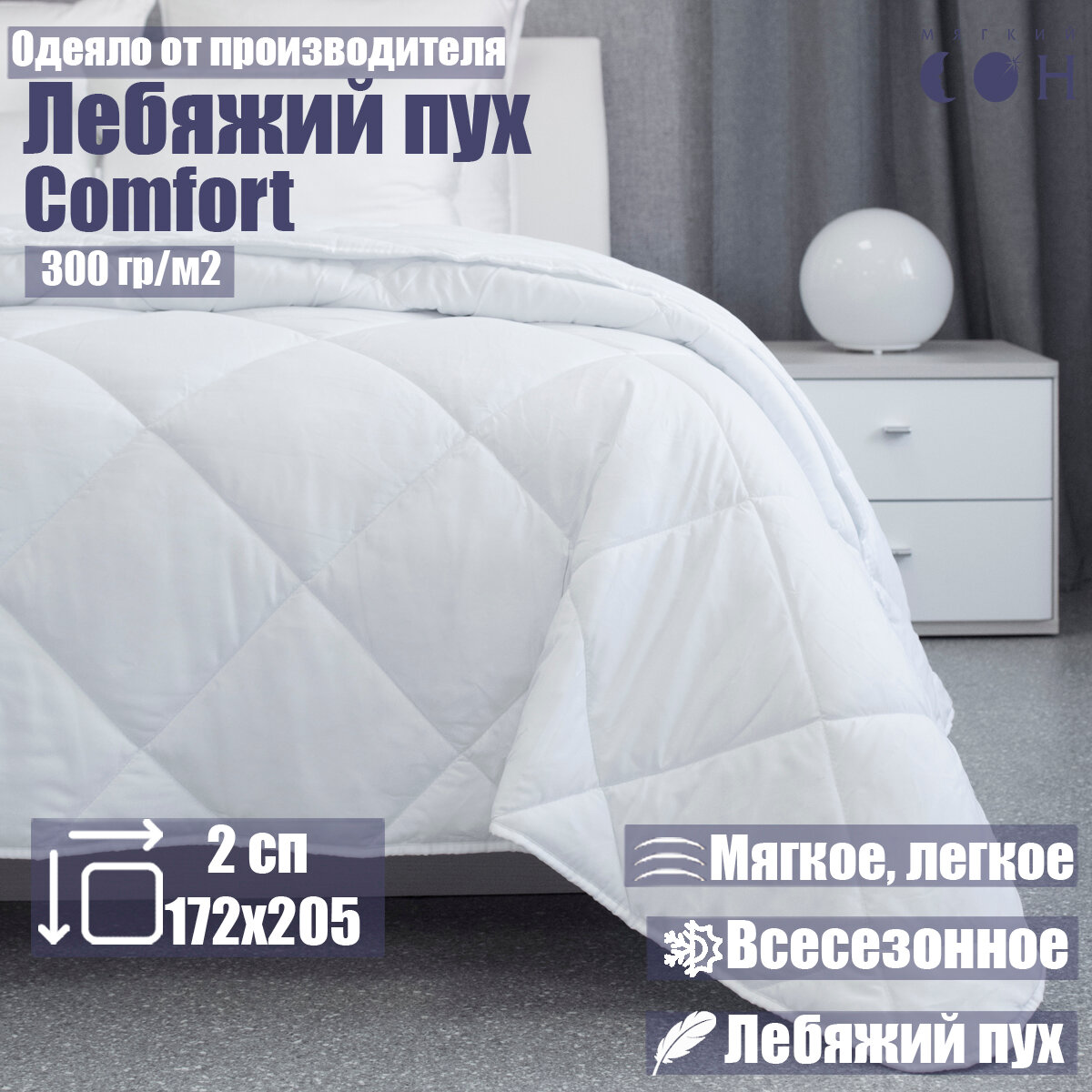 Одеяло Мягкий Сон "Comfort" лебяжий пух 172x205 / Подарок на Новый год