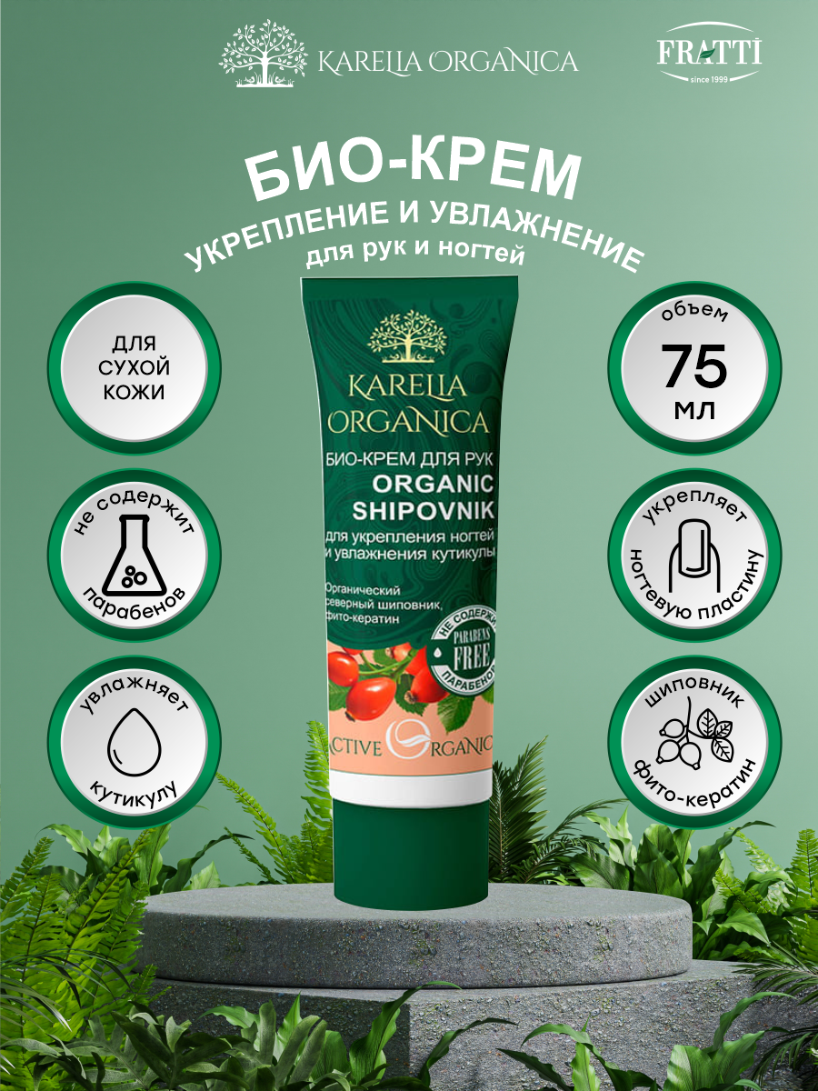 KARELIA ORGANICA Био-Крем для рук "Organic SHIPOVNIK" Для укрепления ногтей и увлажнения кутикулы, 75мл интересное:
