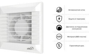 Вентилятор осевой / вытяжка в ванную / вытяжка в туалет d100 мм, белый