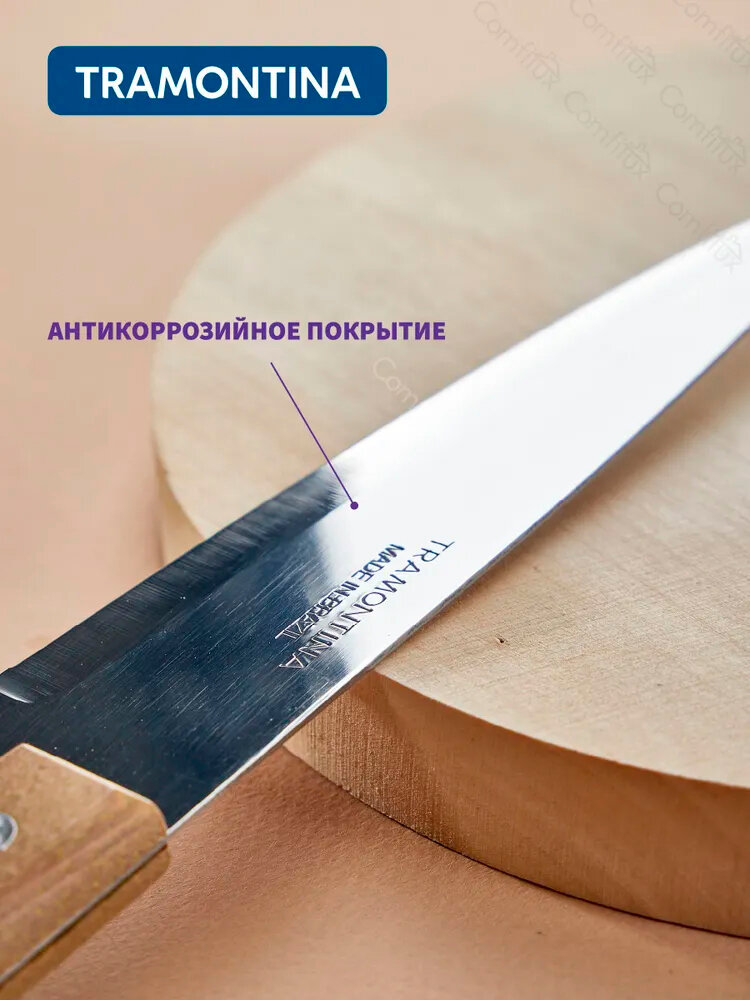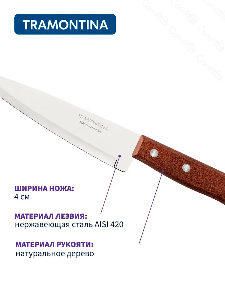 Нож кухонный Tramontina, Dynamic, поварской, нержавеющая сталь, 15 см, рукоятка дерево, 871-394