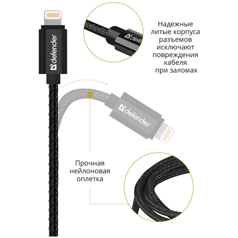 Кабель Defender Кабель Defender ACH01-03T PRO 87808 для Apple, Lightning, черный (1.0м) (ret)