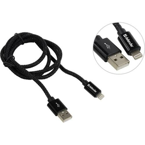 Кабель Defender LIGHTNING TO USB2 1M BLACK ACH01-03T