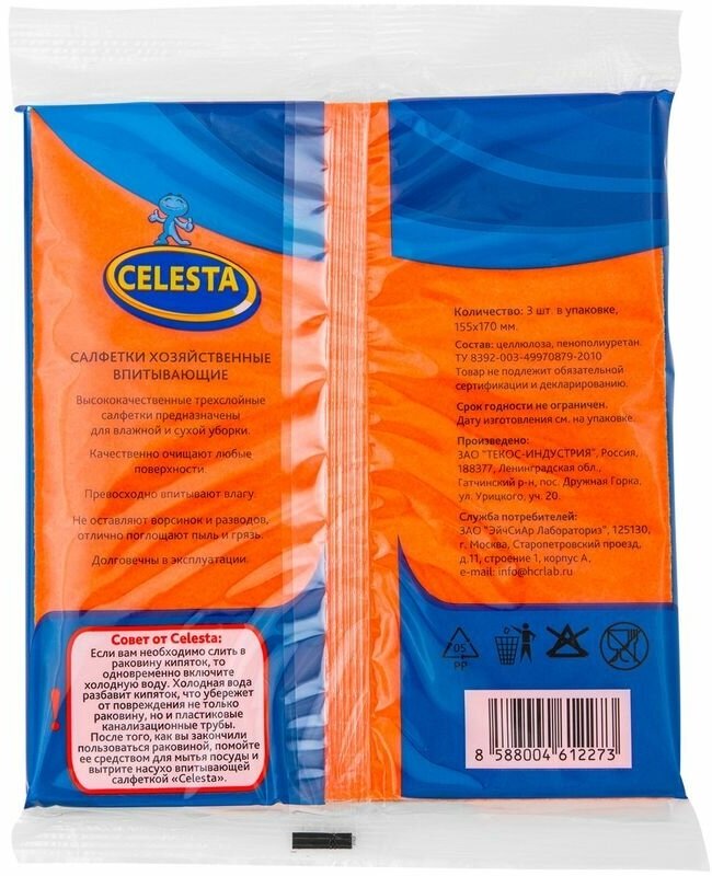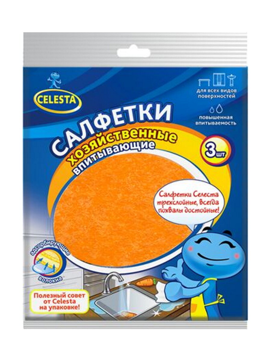 Салфетка для уборки Celesta впитывающая, 3 шт, 15,5х17 см интересное: