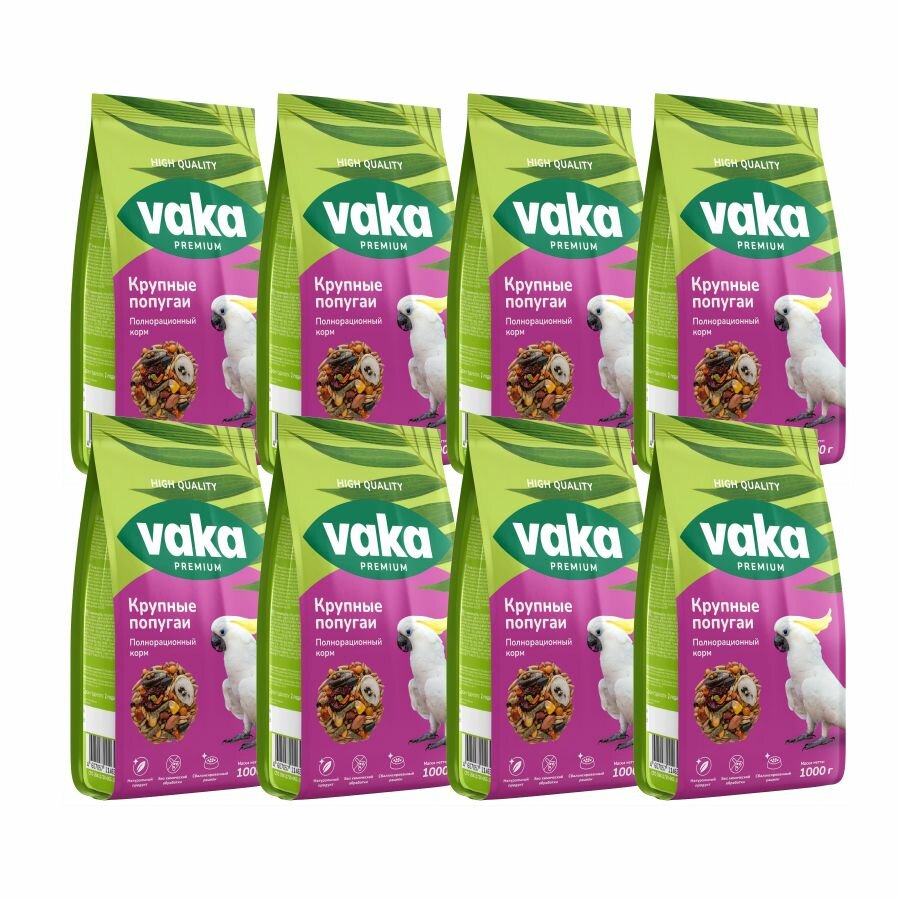 Купить Корм сухой Вака "High Quality" для крупных попугаев, 1кг (8 пачек)