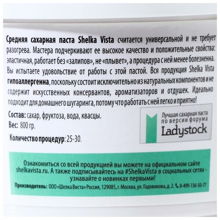 Shelka Vista Сахарная паста для шугаринга и депиляции, средняя, 350 гр.
