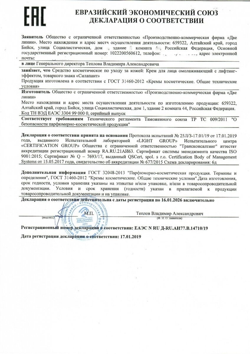 Силапант для лица омолаживающий с лифтинг эффектом Две линии 75 мл