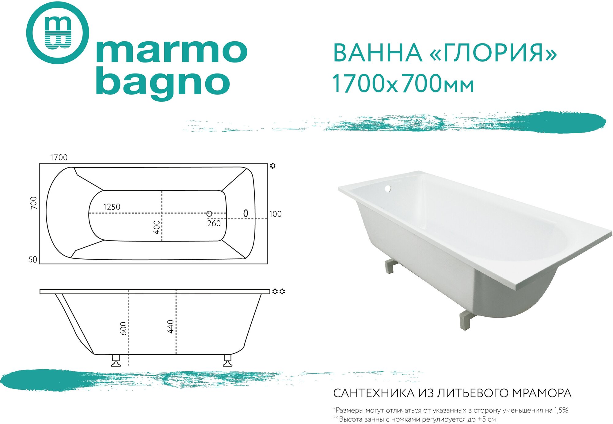 Ванна Marmo Bagno Глория 170x70 с ножками