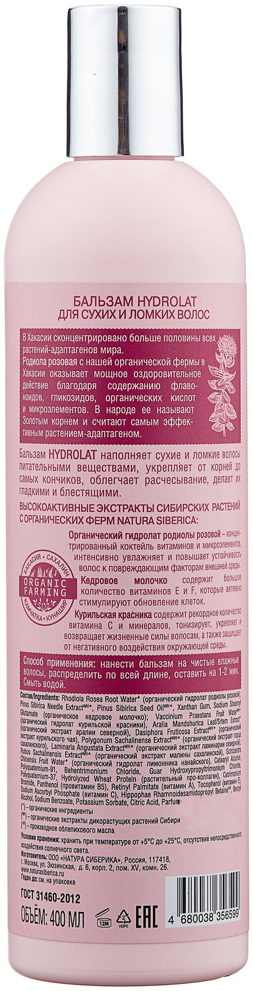 Бальзам Natura Siberica Hydrolat, для сухих и ломких волос, 400 мл .
