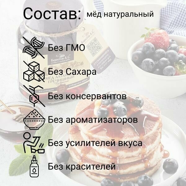 Мед гречишный берестов А.С. натуральный, 500г