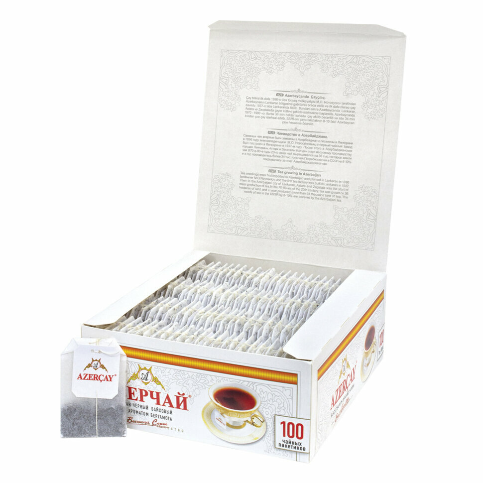 Купить Чай азерчай черный с бергамотом, 100 пакетиков с ярлычками по 2 г, картонная коробка, 419830