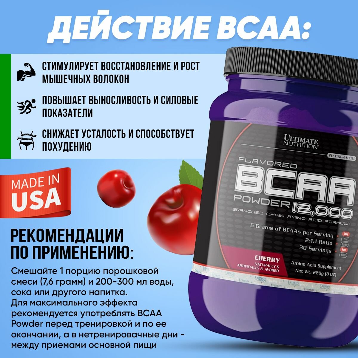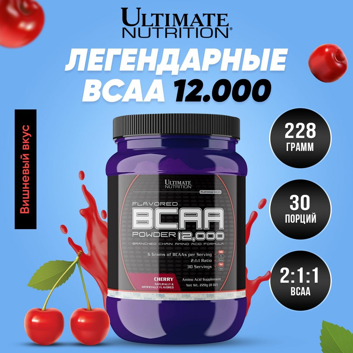 СохранитьUltimate BCAA 12000 Powder Flavored 228g (Вишня) интересное: