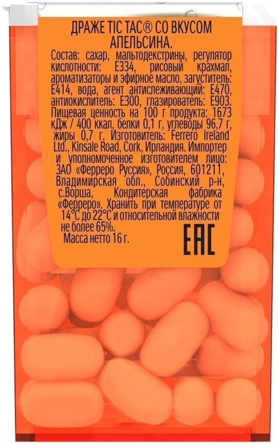 Купить Драже Tic Tac, со вкусом Апельсина, 12 шт по 16 г
